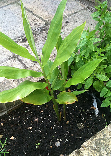 だってミョウガに茎がもう一本生えてきて嬉しいのよ~みてー!