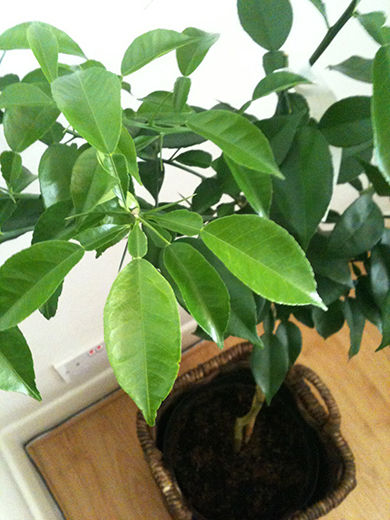 届いた柚子にはまだ実がついてないのですが