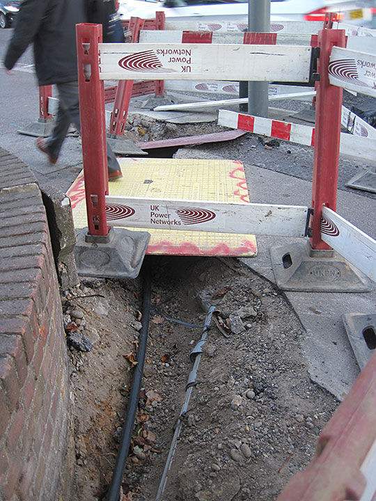 イギリスの電線は基本的に土の中に埋められてあります。