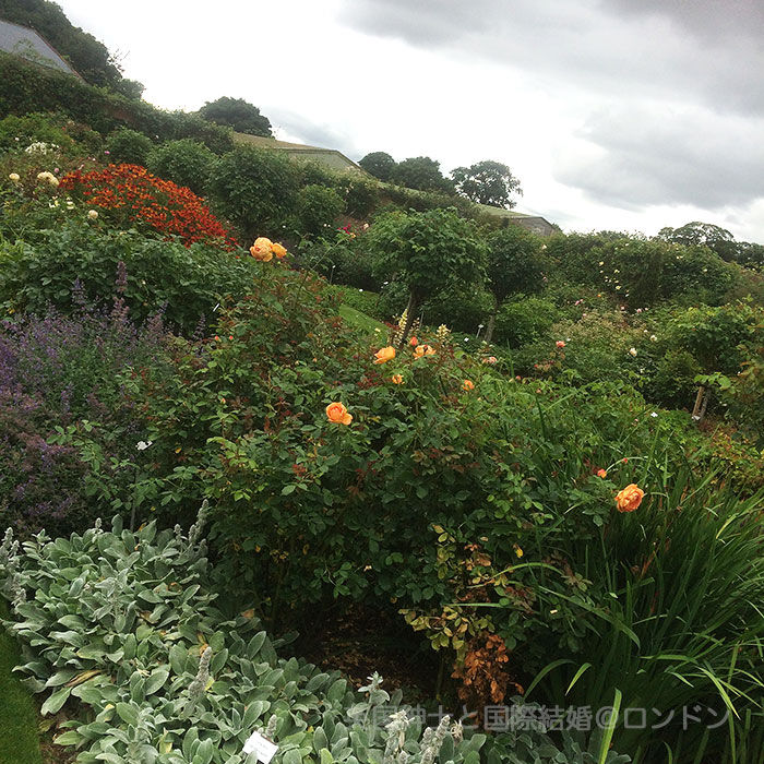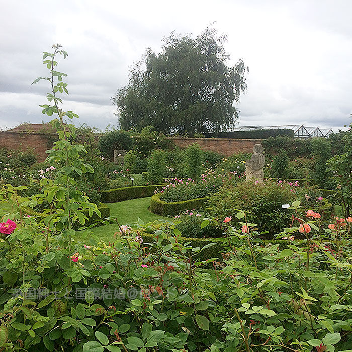 まずはローズガーデンからご紹介。小さなティールームがあって休憩できる。