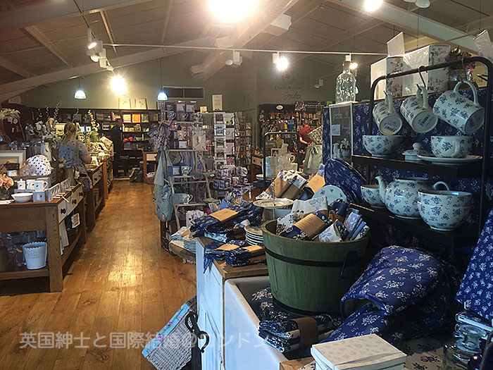 入り口はいってすぐショップ。向かって右手がティールームと薔薇の苗売り場