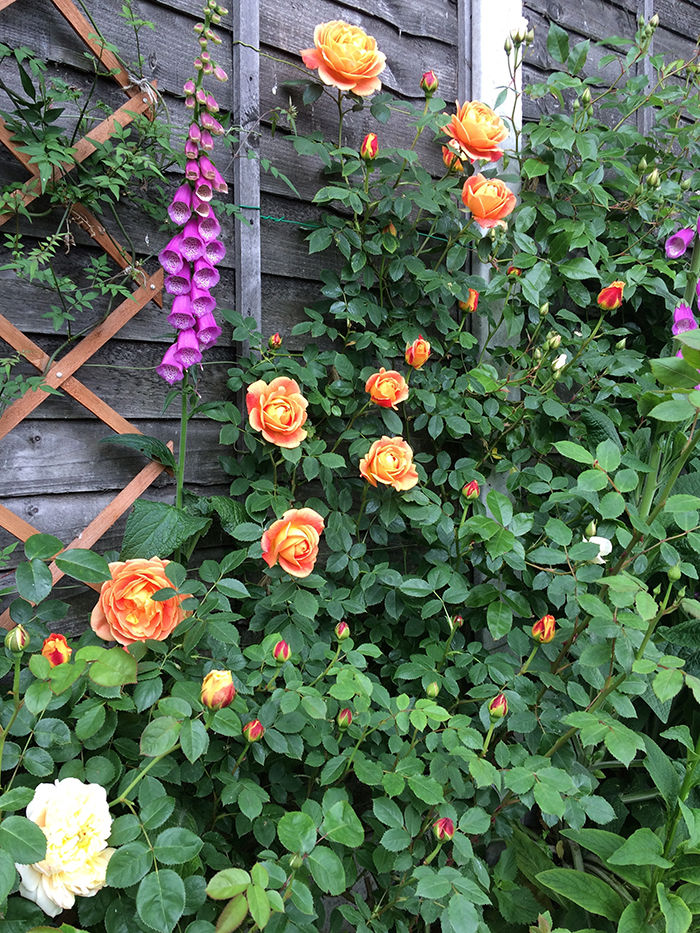 右手がアイスバーグなんだけど、レディオブシャーロットが一足早く咲いてます。
