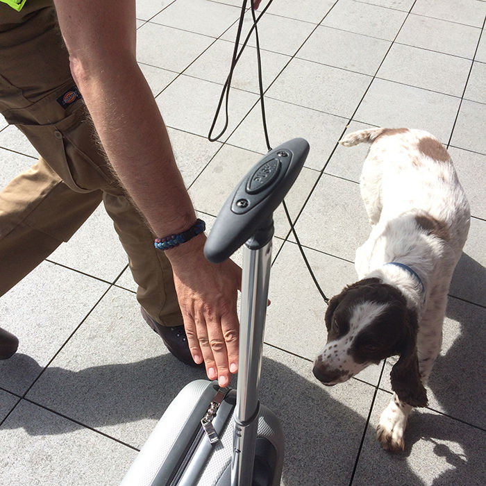 スニッファドッグ、スーツケースや大きな荷物のセキュリティチェックする爆発物探知犬です。