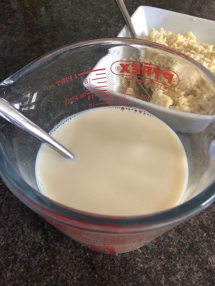 濃いめの豆乳にエプソムソルト(を溶かした水)を混ぜて蒸すだけ、型とかナシの手抜きだけど。