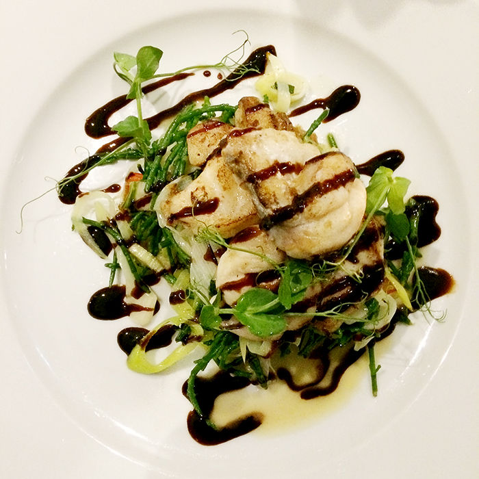 バルサミコのグレイジングと付け合わせのネギ(Leek)&オカヒジキとの相性も良かった!