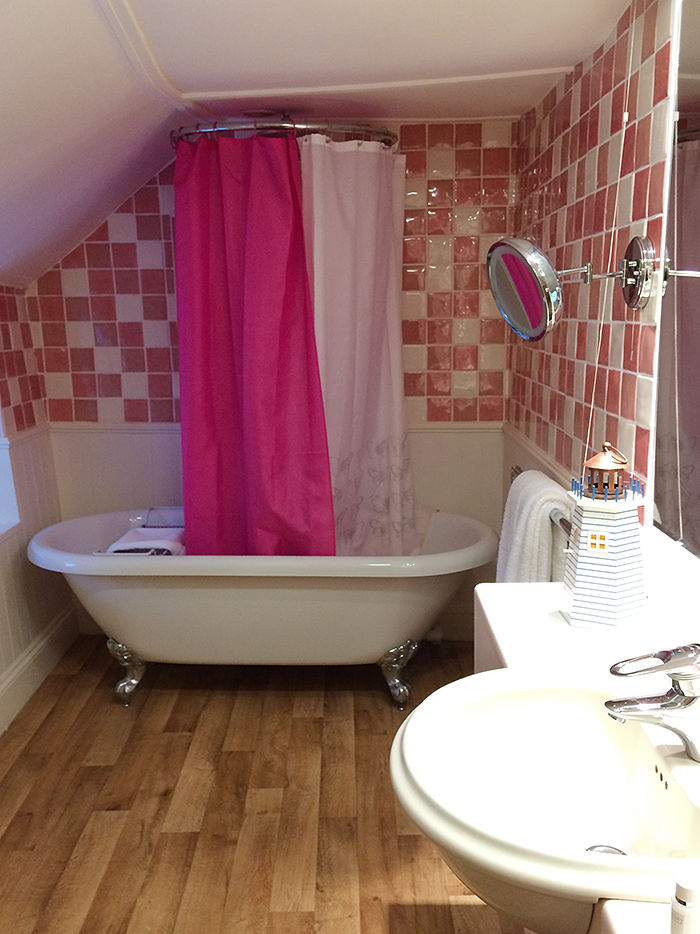 ローズコテージの名にふさわしいこんなお風呂場も。