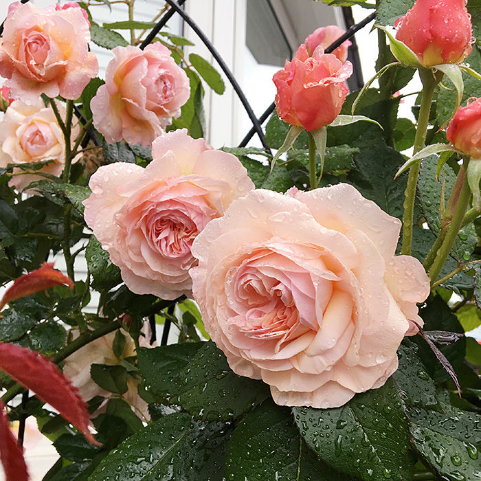 最近のシトシト雨に負けないア・シュロップシャイア・ラド。大輪で香りも良くて、美しくて強いバラ。(ラド=男の子)