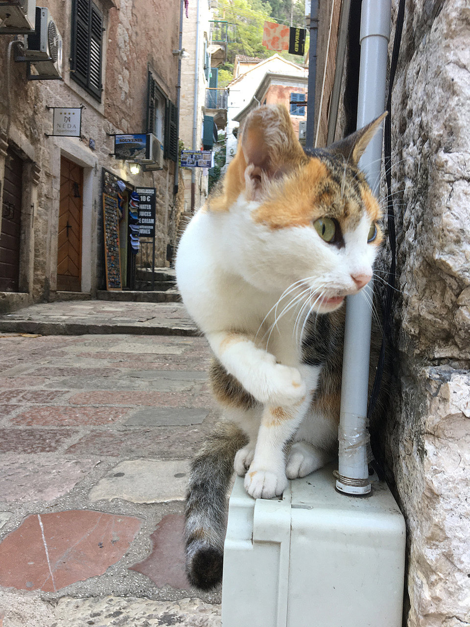 古くから商船が行き来していた湾岸都市コトルでは、ネズミ避けとして乗船していた猫の子孫が多く暮らしているのだとか。また、猫によって街が救われた逸話もあるみたいだし、猫フレンドリーの街である事は間違いなさそうです。飼い主の居ない地域猫が圧倒的に多いとはいえ、人は皆猫に優しく、猫も人によく慣れていて、のびのびと暮らしていたのがとても印象的でした。