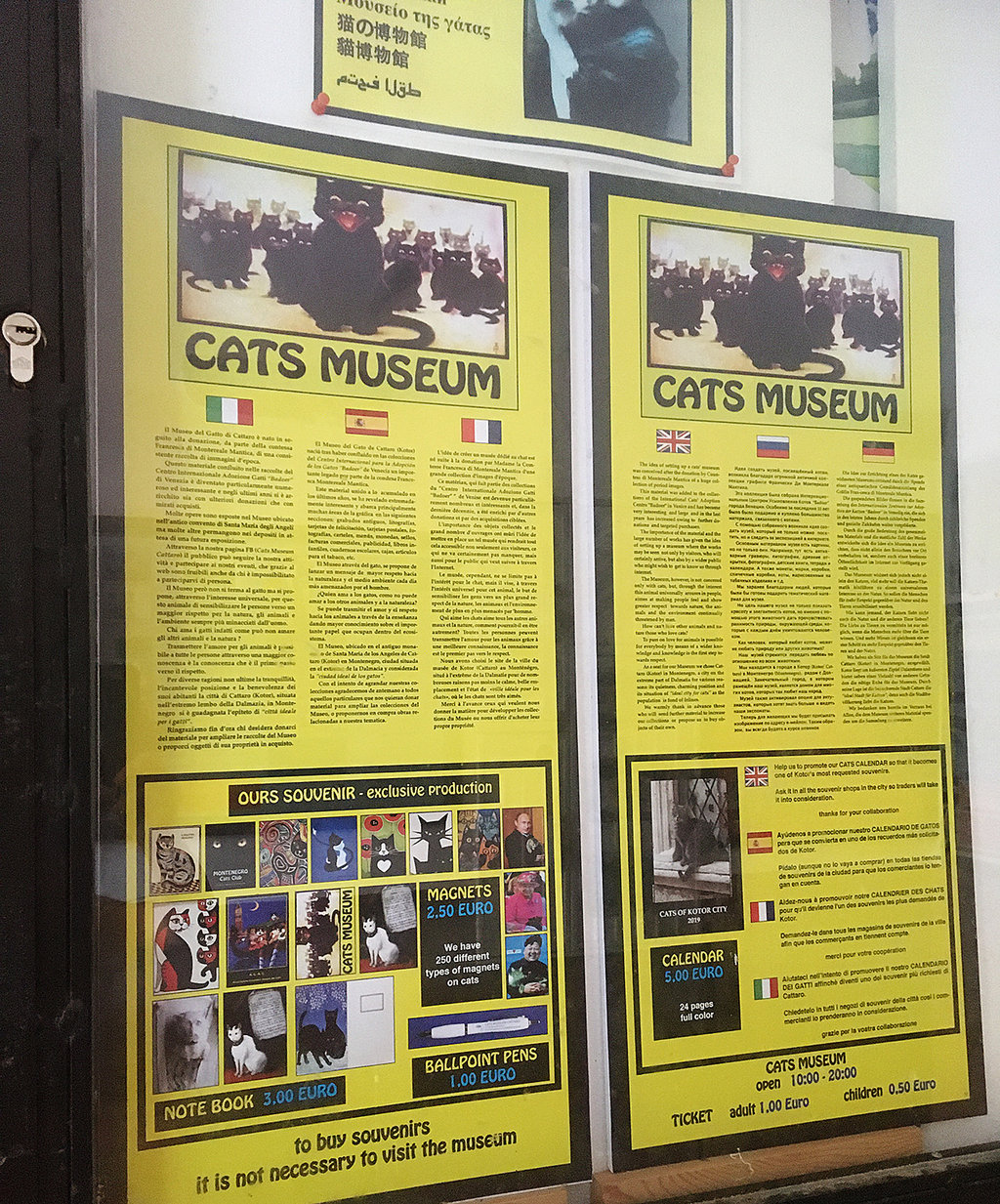 コトルはあちこちに猫がいるのだけど、猫グッズを売るお土産屋さんも多くて「猫はコトルの街のシンボルなのよ、非オフィシャルだけどね」って。ちなみにオフィシャルのシンボルはベネチア同様ライオンだそうです。