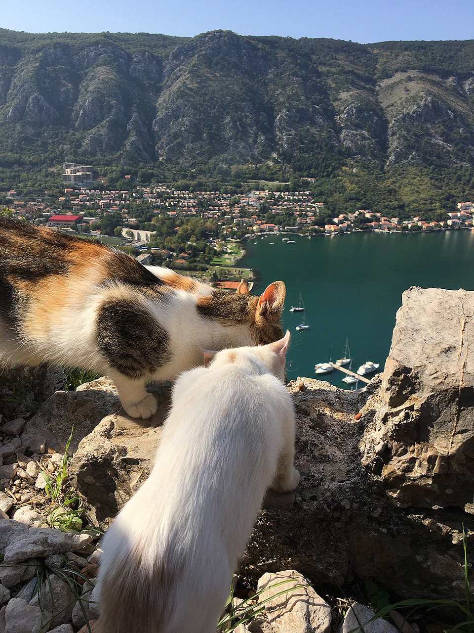 クルーズ船も寄港するコトル湾、この2匹は飼い猫かな。