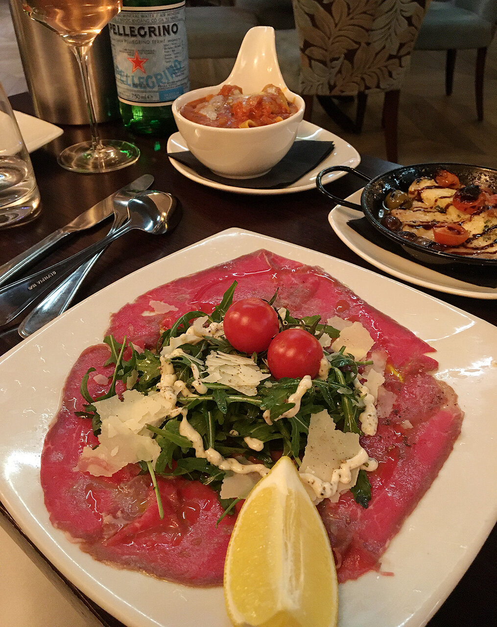 ちなみに↓こちらは先日まで使っていたiPhone6Sで撮ったもの。近所のイタリアンなんだけど、牛肉のカルパッチョとラム肉のボロネーゼが美味しいんですよ。あんまりいい写真じゃないからお蔵入りしてたけど。