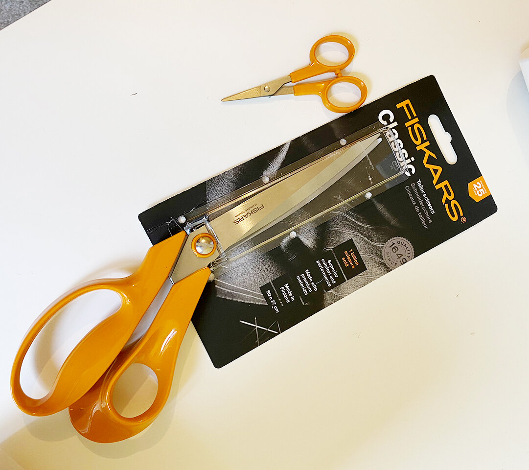 フィンランドの有名メーカー、フィスカース(Fiskars)のテイラー用ハサミと糸切り買ってみたけど、良いハサミは作業がラク!今まで堅いハサミで裁断してたせいか指にタコが出来てたんだけど、それが無くなりました。