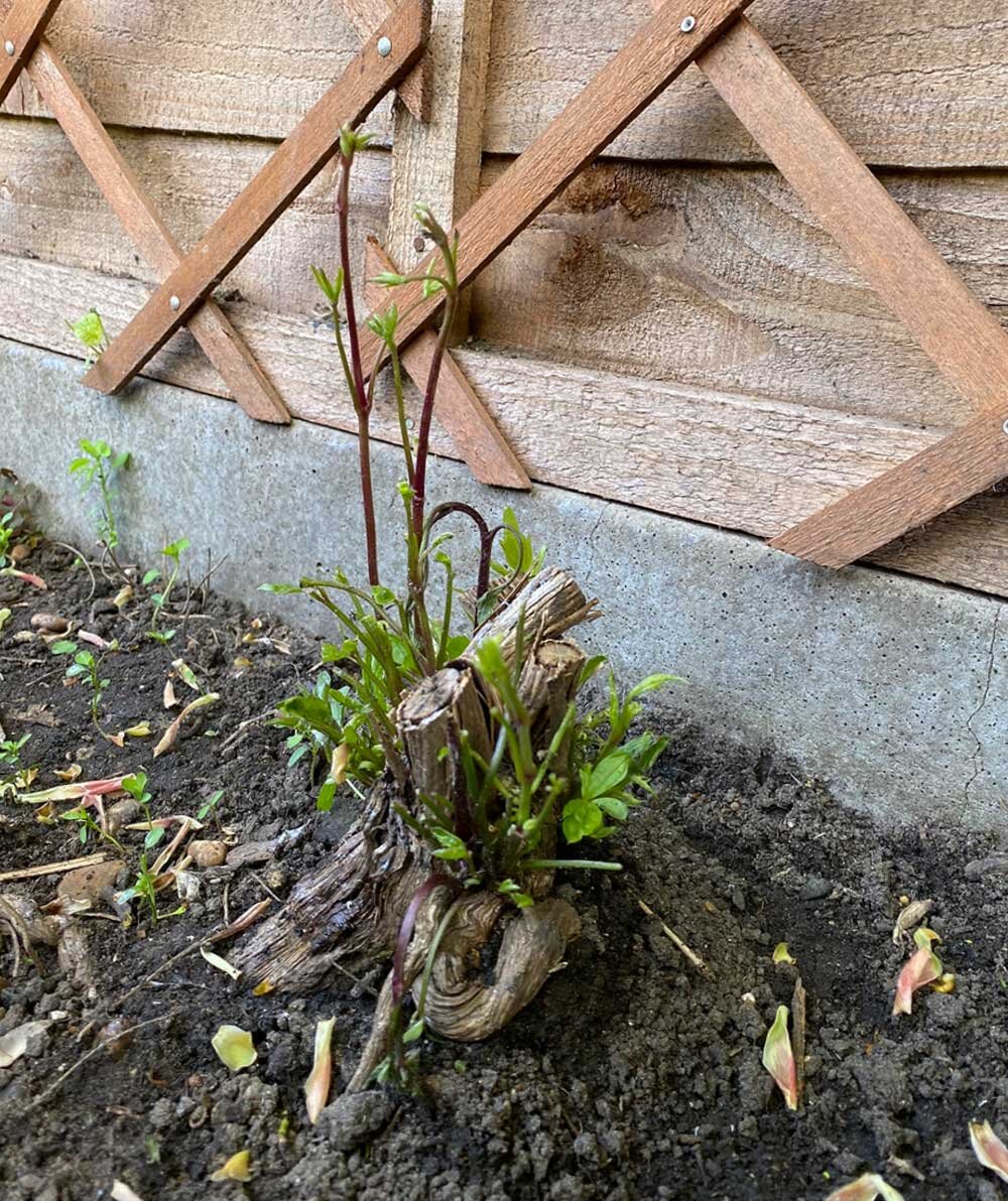 枝を落としたところで、新しいツルが伸びてきているのに気付きました。