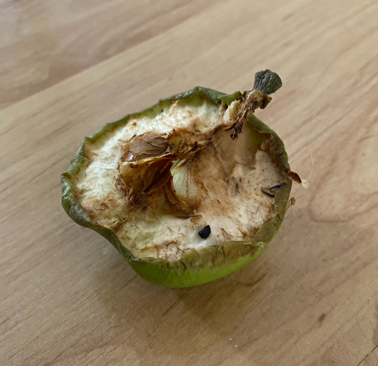 タビサがニャーニャー言いながらこの小さなりんごを持ち歩くので捨てられなくて。